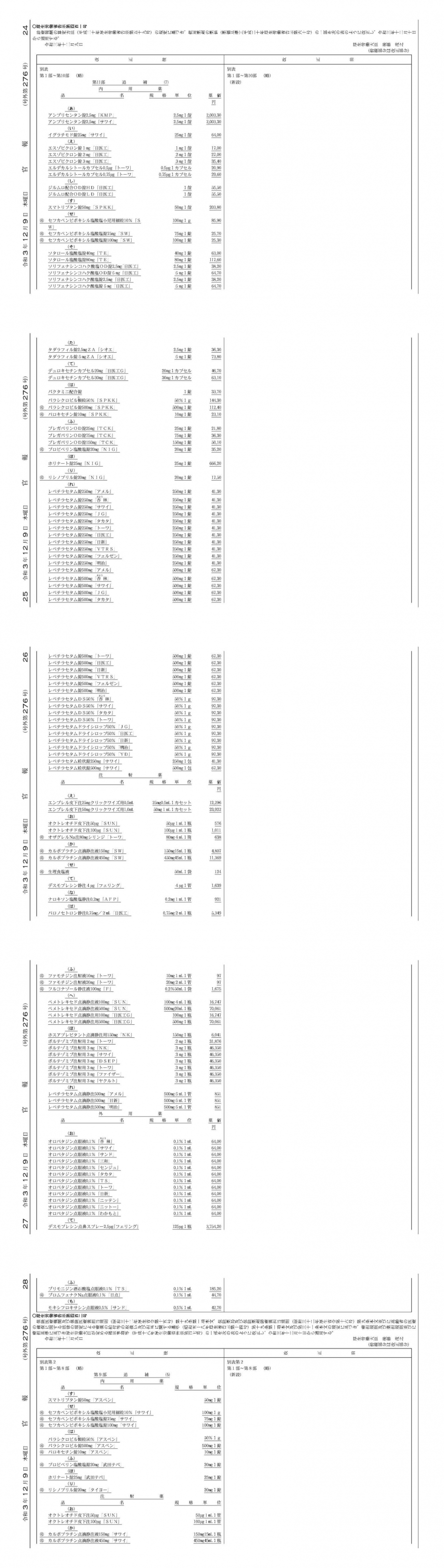 2021年12月9日告示・10日適用 後発品等告示