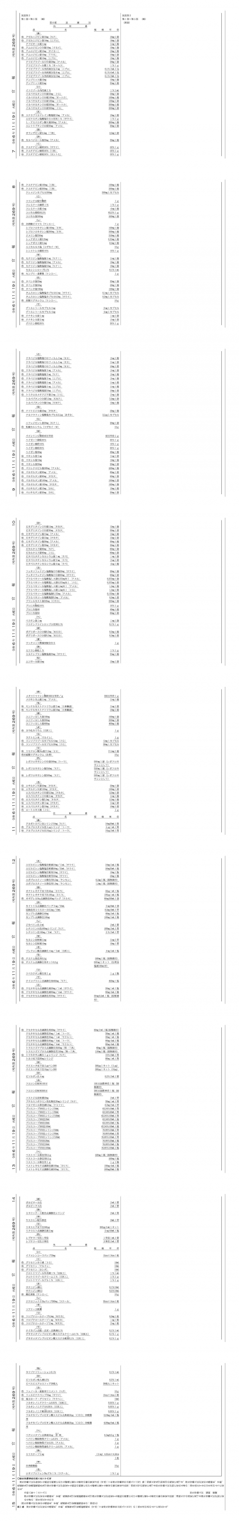 254品目(内用:147,注射:71,外用:36)