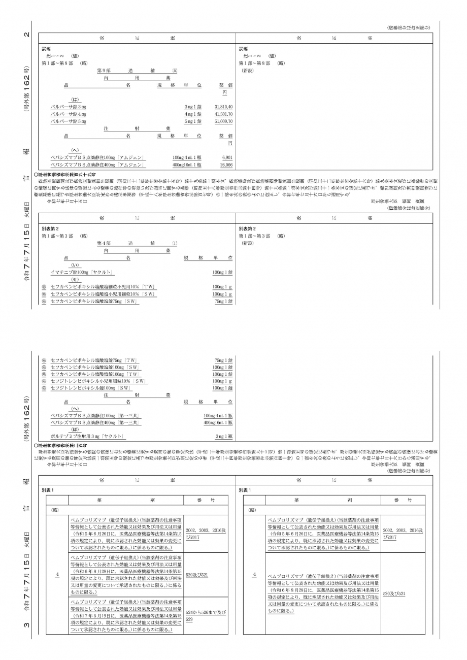 2025年7月15日告示・16日適用 経過措置移行品目