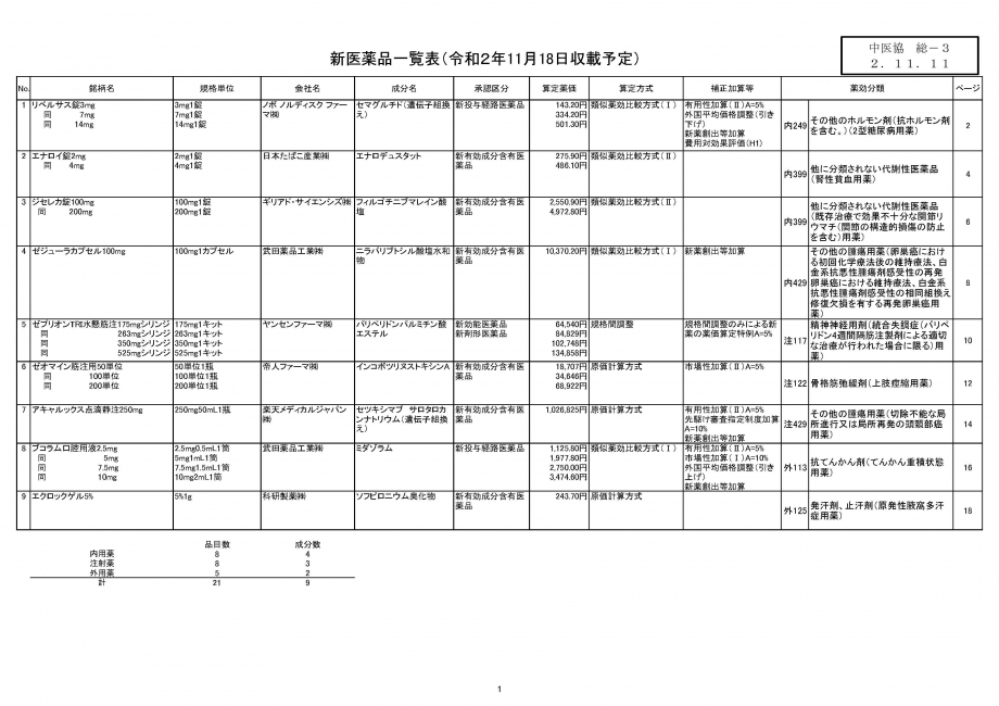 中央社会保険医療協議会 総会(第468回)にて了承されました。11月18日に収載予定です。