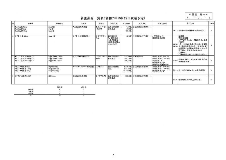 2025年10月15日 医薬品の薬価収載