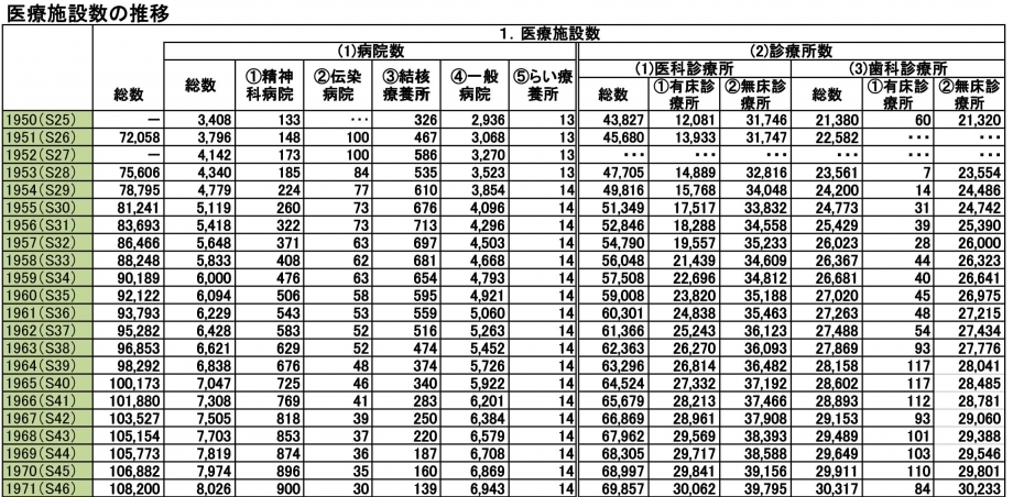 医療施設数の推移
