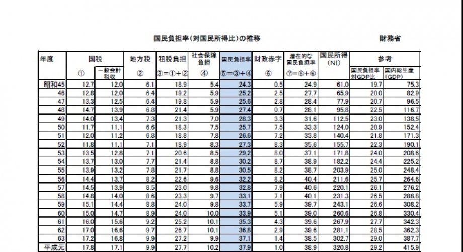 国民負担率(対国民所得比)の推移