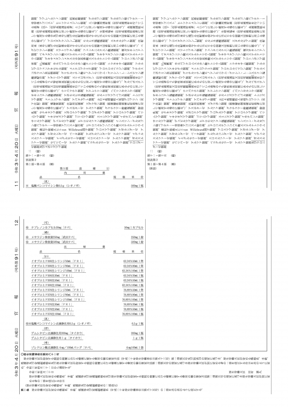 2021年4月20日告示・21日適用 経過措置移行品目