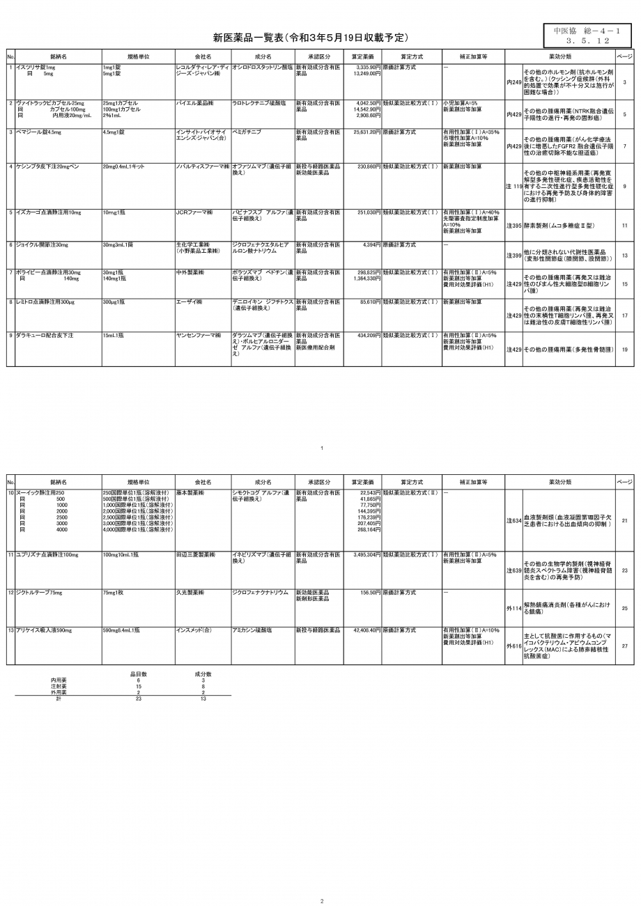 2021年5月12日 医薬品の薬価収載