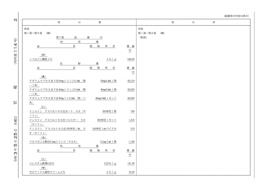 2021年5月25日告示・26日適用 報告品目等告示