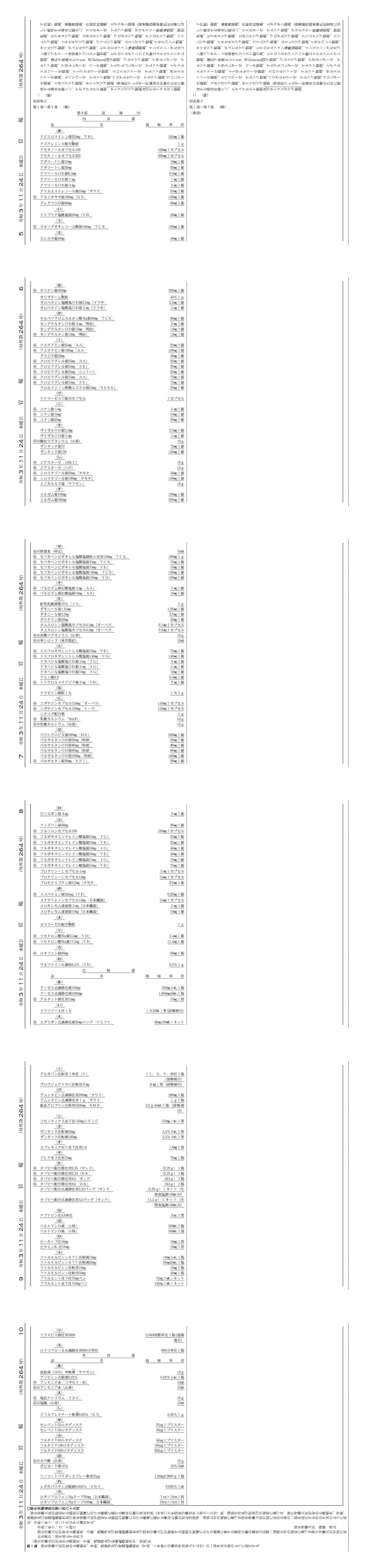 2021年11月24日告示・25日適用 経過措置移行品目