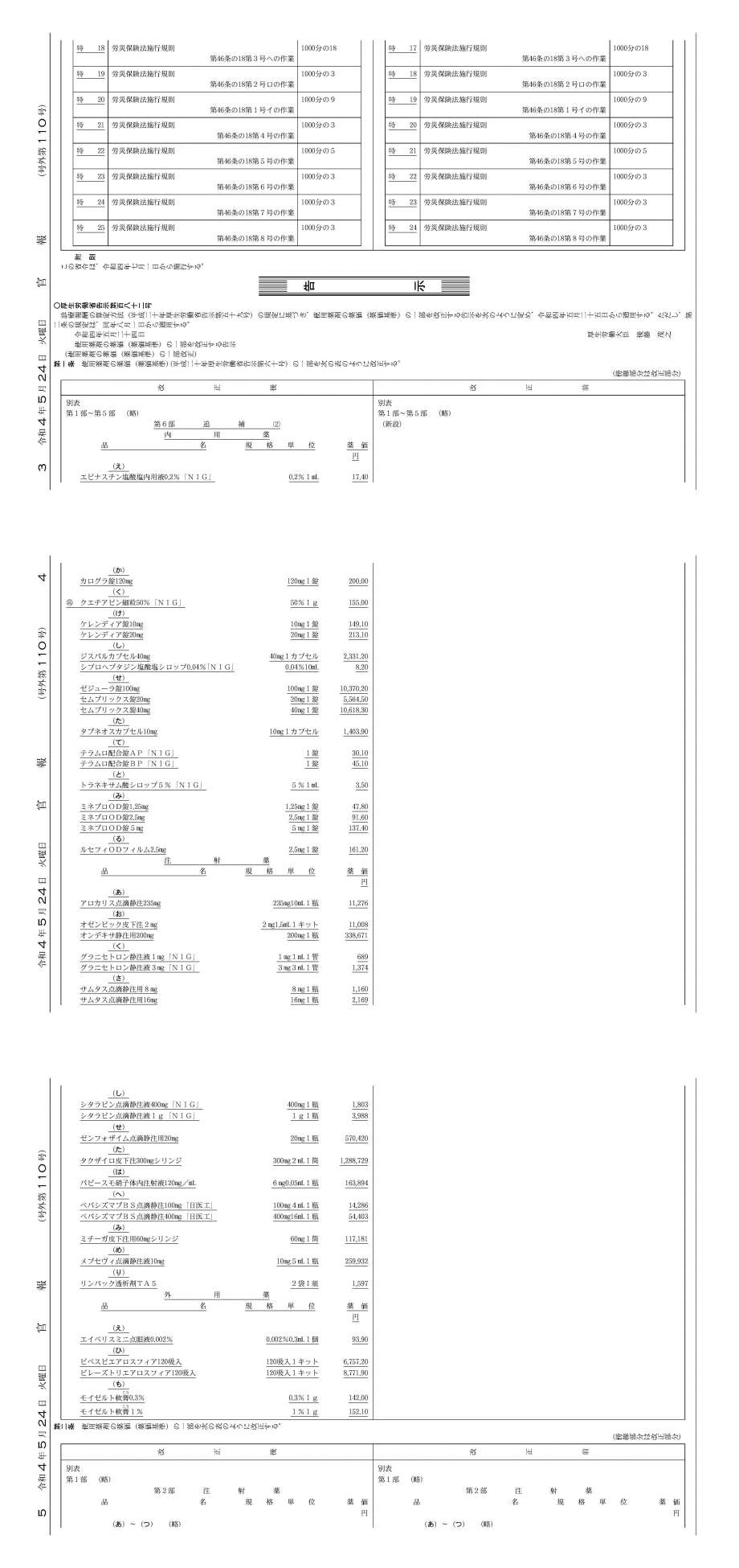 2022年5月24日告示・25日適用 新薬等告示