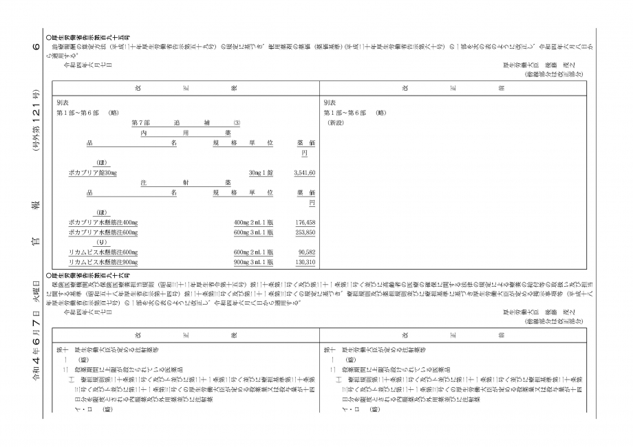 2022年6月7日告示・8日適用 緊急収載告示
