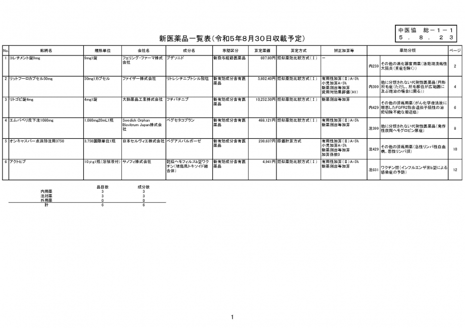 2023年8月23日 医薬品の薬価収載