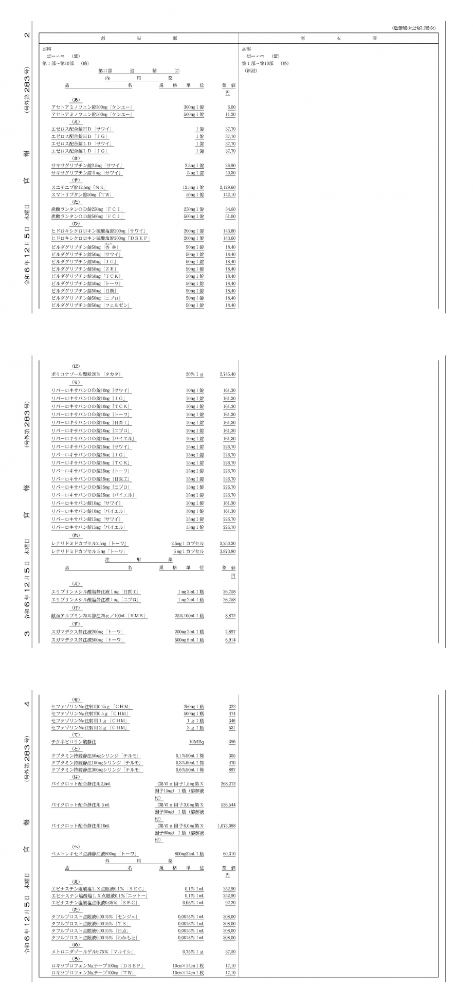 2024年12月5日告示・6日適用 後発品等告示