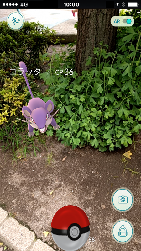 スマートフォンの画面を通し,実際の風景の上に現れるポケモン。