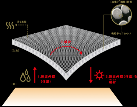 例えば「光電子」などの遠赤効果のある素材は,自分自身の体温による保温をしてくれるそうです。