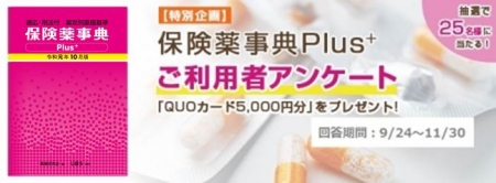 保険薬事典Plus+ のご利用者アンケートにご協力をお願い致します。