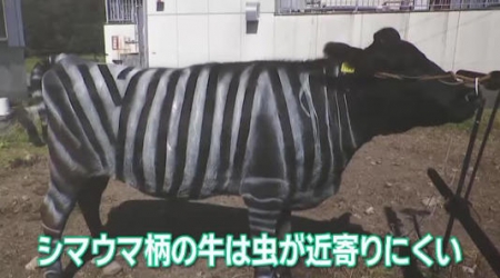 「黒いウシにシマウマ模様を付けて『シマウシ』にすると虫が寄り付きにくい」