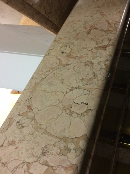 日本橋高島屋の階段の手すりで発見した巨大アンモナイト。